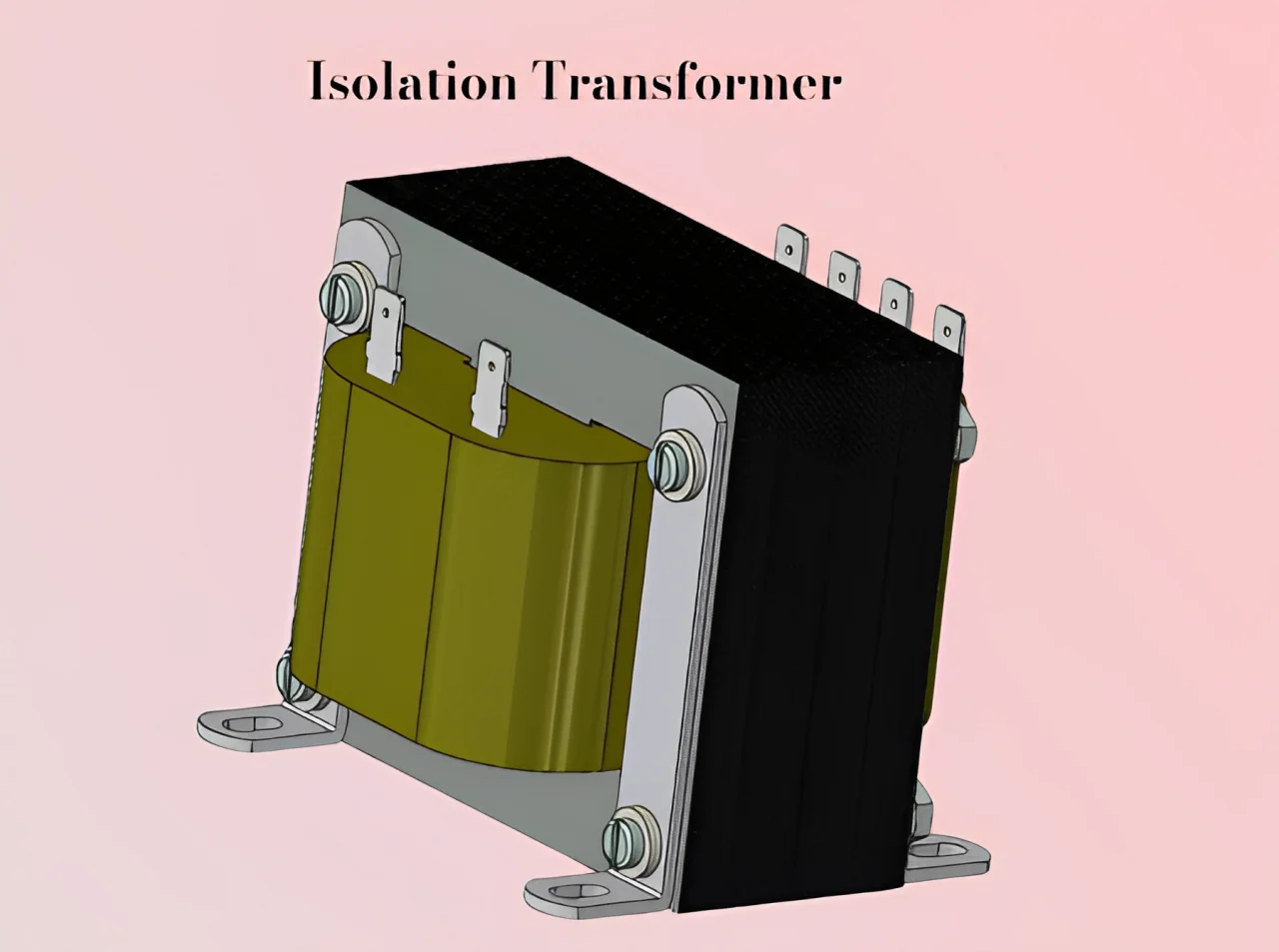 An Isolation Transformer is a device used to decouple two circuits: the load from the Isolation Transformer and the input supply. It suppresses electrical noise occurring in transmission lines, blocks the transmission of DC signals between circuits, and allows AC signals to transmit. Additionally, it prevents interference caused by ground looping. Isolation Transformers are constructed with two isolated Faraday shields between the primary and secondary windings, effectively isolating the primary and secondary circuits and their grounds.